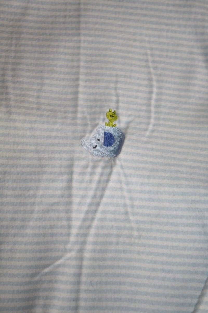 (1) Blue/White Stripes with Sewn Frog and Elephant Receiving Blanket, Approx 28"x28"