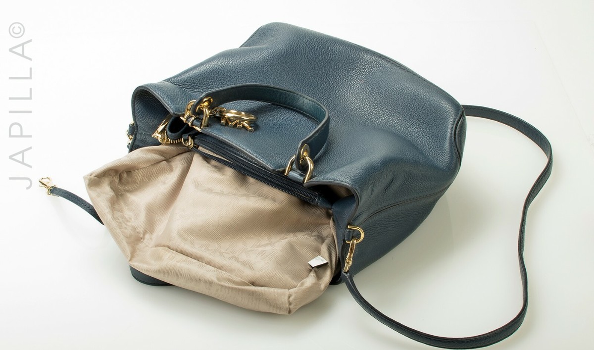 Inside is your typical MK lining made of beige sateen MK logos. Triple compartment, which middle one is zippered.