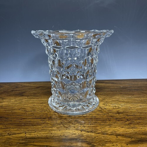 Vintage Fostoria American Crystal Glass Cubist Flared Mouth Cylinder 5.5" Vase