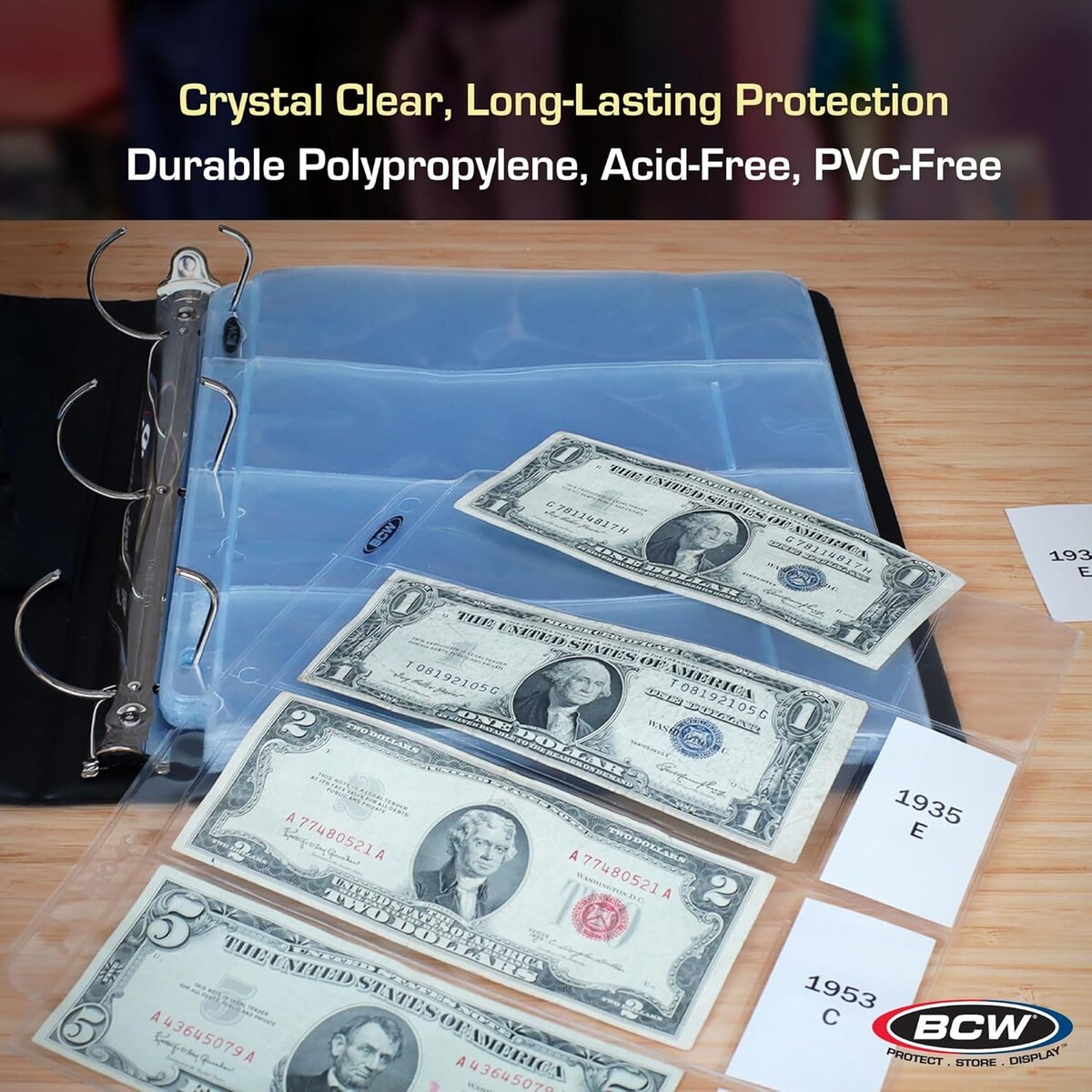 3 packs of 100 (300) BCW 2 ¾" x 6 ¾" Currency 4-Pocket Pro Binder Pages