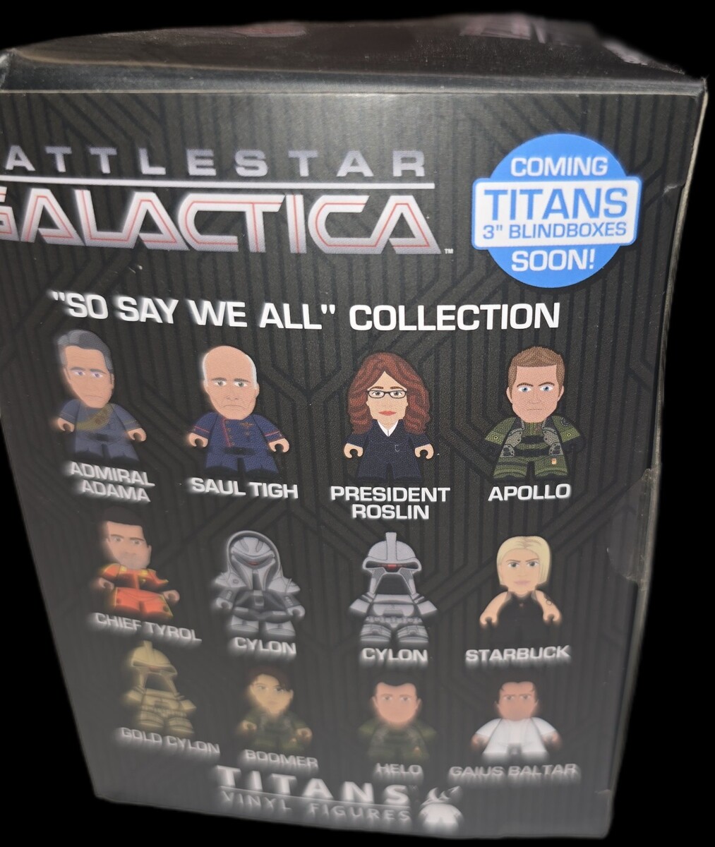 The Battlestar Galactica Loot Crate Exclusive Cylon Raider 4.5" Scar Titan is a collectible vinyl figure from the television show Battlestar Galactica. This item, produced by Lunartik, features intricate details and is part of the TITANS Vinyl Figure series. Packaged in its original packaging, this highly detailed Cylon Raider is a must-have for fans of the popular sci-fi series. With a scale of 1:6, this figure brings the iconic character to life in a unique and collectible form.