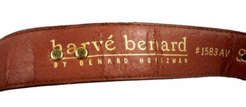 Vintage Harve Benard Holtzman Studded Belt 1980s; 26-29" 30" x 1 1/8" brown faux leather belt with gold criss-crosses, similar to a Paloma Picasso design. It is 30" long with holes from 26" to 29". The gold tone buckle is very heavy though the belt doesn't seem to be of that good a quality.