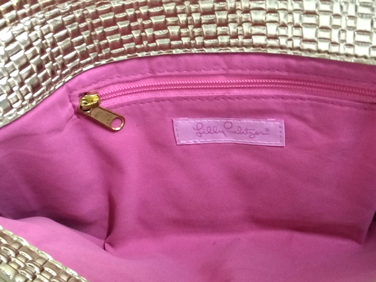 Lilly Pulitzer Gold Basketweave Clutch Bag Elephant Emblem Purse Style 15153