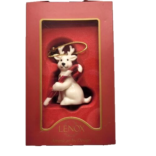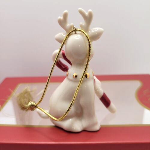 Lenox Reindeer with Candy Cane Porcelain Christmas Ornament