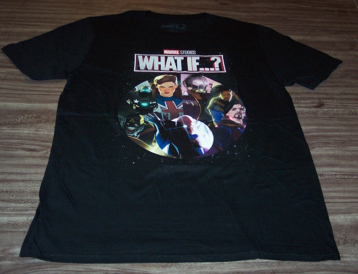This is a Marvel Studios WHAT IF? T-shirt. It is a size MEDIUM, and it is NEW. It is 19 inches from armpit to armpit and 28 inches in length. Officially Licensed. Combine auctions to save on shipping. D2AD