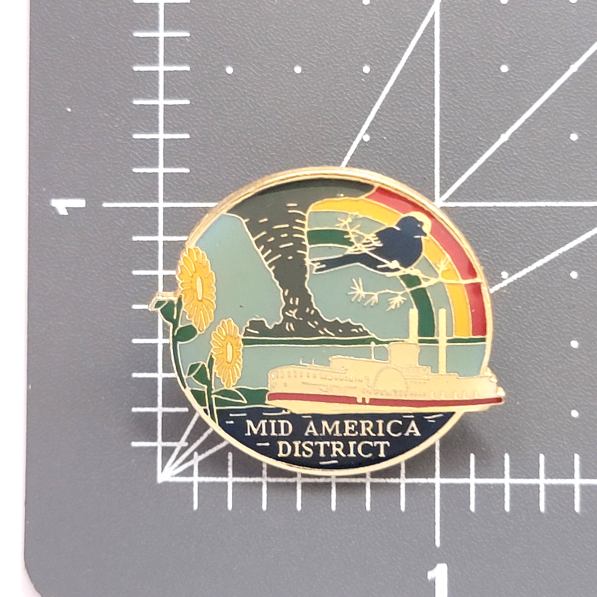 USPS Mid America District Bluebird Sunflower Riverboat Rainbow Tornado Gold Tone Enamel Pin