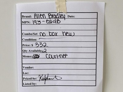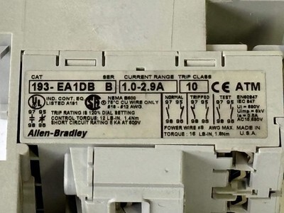 Allen-Bradley 193-EADB Electronic Overload Relay 3-Phase Motor Protection New - No box The Allen?Bradley 193?EADB is a solid-state electronic overload relay designed for three-phase motor protection. It features an adjustable full-load current range (typically 3.2 ? 16 A) and selectable trip classes (10, 15, 20, 30) for versatile application. The relay mounts directly to compatible IEC contactors and includes both normally open alarm and normally closed trip auxiliary contacts. It provides phase-loss protection, automatic/manual reset options, and integrates seamlessly into existing motor control systems. This model has been succeeded by newer series, so confirm lifecycle status for upgrades. Listed by: Maksim (Sales Team) ?Meaning is about making a difference, not having an audience.?~ Adam Grant (A positive moment brought to you by Help Resale) About Us Welcome to Help Resale, your go-to consignment shop where value meets quality. At Help Resale, we're dedicated to providing you with an exceptional shopping experience, whether you're looking to find the best deals or consign your items. Need to buy a product, but don't see it in our store? Please feel free to reach out to us and we will help you find it! Help Resale 7200 Fair Oaks Blvd Suite 120 Carmichael CA 95608 Business Hours: Monday-Friday: 9:00 am to 5:00 pm (PST) All product and company names are trademarks TM or registered trademarks of their respective holders. Use of them does not imply any affiliation with or endorsement by them.