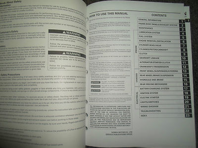 Full of information and illustrations, covers everything, step by step instructions, assembly/disassembly, exploded illustrations/diagrams/troubleshooting, great manual to have when owning/servicing a HONDA and will be a great aid to keep your BIKE on the road. These manuals will save you money in repairs/service. A must have if you own one of these vehicles.