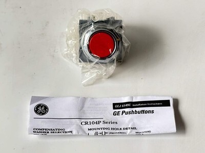 2PK General Electric CR104PBG01R1 Flush Red Heavy-Duty Pushbutton, 10 A New - Open Box The General Electric CR104PBG01R1 is a heavy-duty, flush-cap pushbutton from the CR104P series, featuring a red actuator and one normally-closed (1NC) contact. It?s rated for 10 A at up to 600 VAC/VDC and supports NEMA 1/3/3R/4/4X/12/13 enclosure ratings. With its oil-tight and watertight construction, it?s suitable for rugged industrial environments. The chromium-plated zinc bezel and nylon body provide durability and enhanced mounting torque for secure installation. Ideal for control panels requiring reliable emergency stop or shutdown switching in harsh conditions. Listed by: Maksim (Sales Team) ?Meaning is about making a difference, not having an audience.?~ Adam Grant (A positive moment brought to you by Help Resale) About Us Welcome to Help Resale, your go-to consignment shop where value meets quality. At Help Resale, we're dedicated to providing you with an exceptional shopping experience, whether you're looking to find the best deals or consign your items. Need to buy a product, but don't see it in our store? Please feel free to reach out to us and we will help you find it! Help Resale 7200 Fair Oaks Blvd Suite 120 Carmichael CA 95608 Business Hours: Monday-Friday: 9:00 am to 5:00 pm (PST) All product and company names are trademarks TM or registered trademarks of their respective holders. Use of them does not imply any affiliation with or endorsement by them.