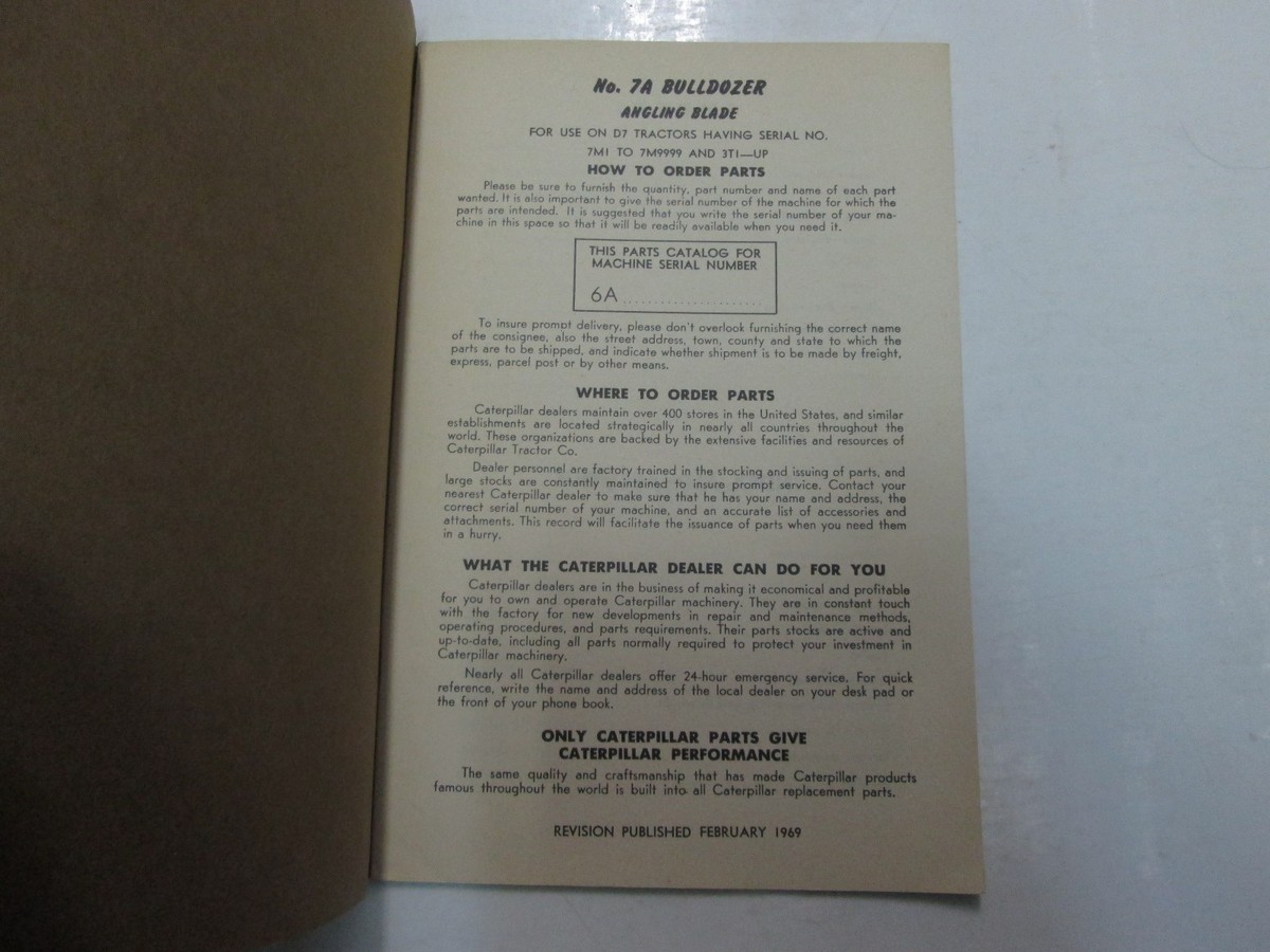 1969 Caterpillar No.7A Bulldozer Parti Libro Manuale Minori Wear Fabbrica OEM