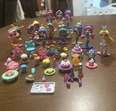 The Party POP teenies Spin Master Mini 2.25 Inches Figures Lot of 14 + Accessories is a set of plastic dolls from the Party Popteenies product line. Each doll in the set varies in hair type, complexion, and gender, with a size of 2.25 inches. Manufactured in 2018 by Spin Master, this lot includes 14 figures and various accessories perfect for a fun party occasion. These original figures are a great addition for collectors or for creating imaginative play scenarios.nice condition comes as is