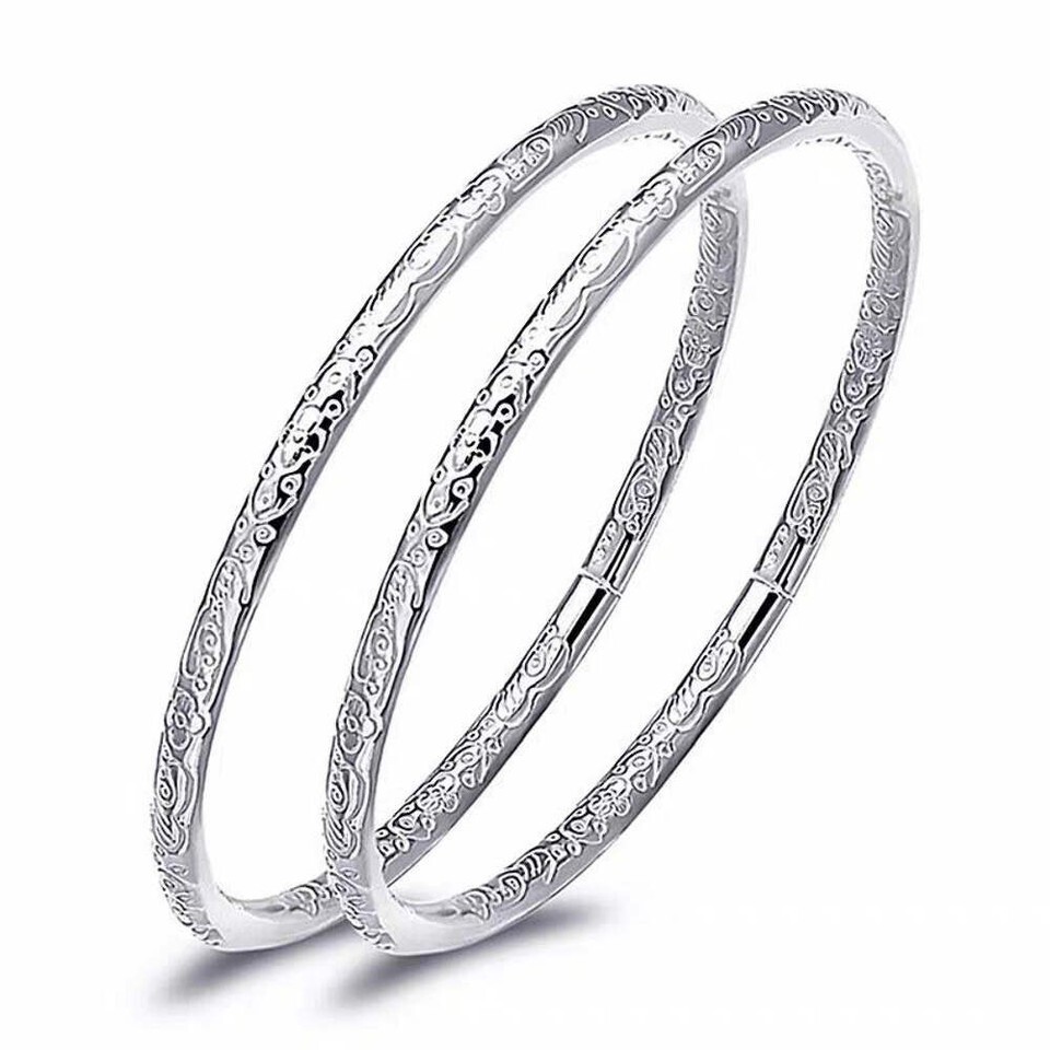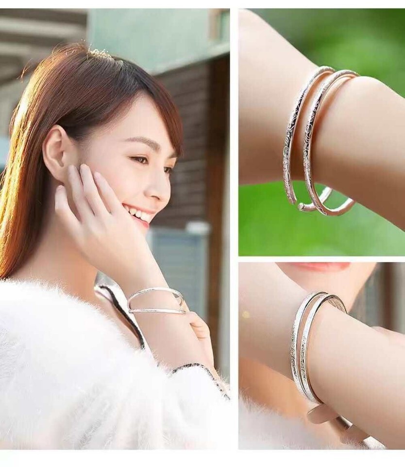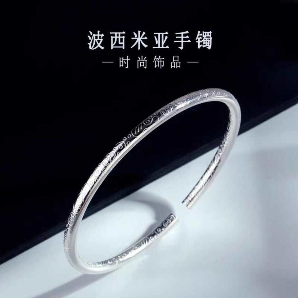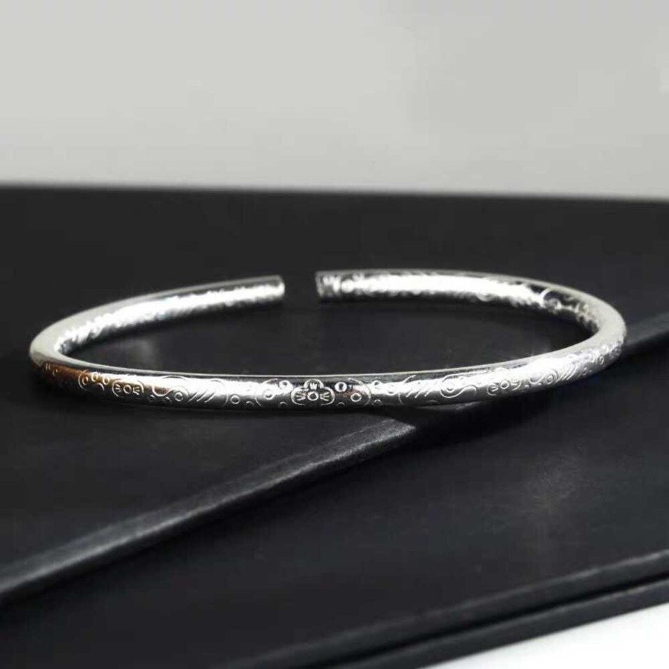 S9999 Silver Filled Vermeil Bohemian Carving Lucky Bangle Cuff, SL287
