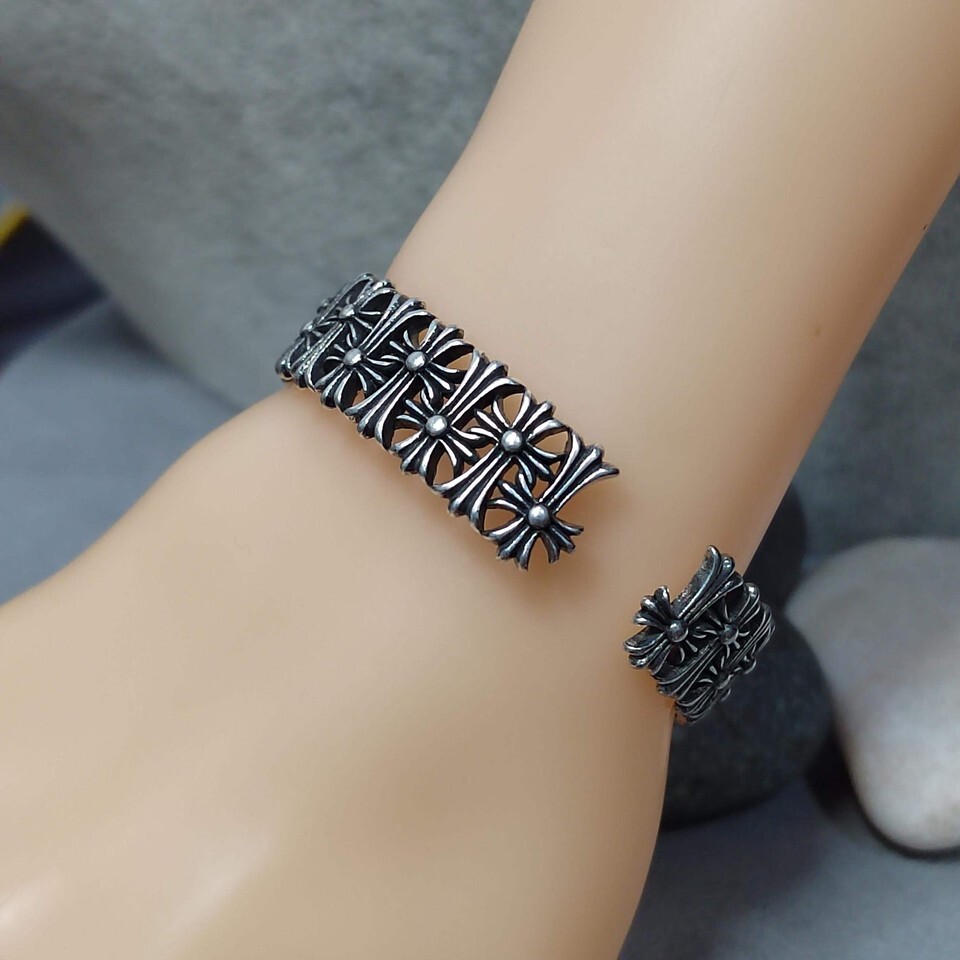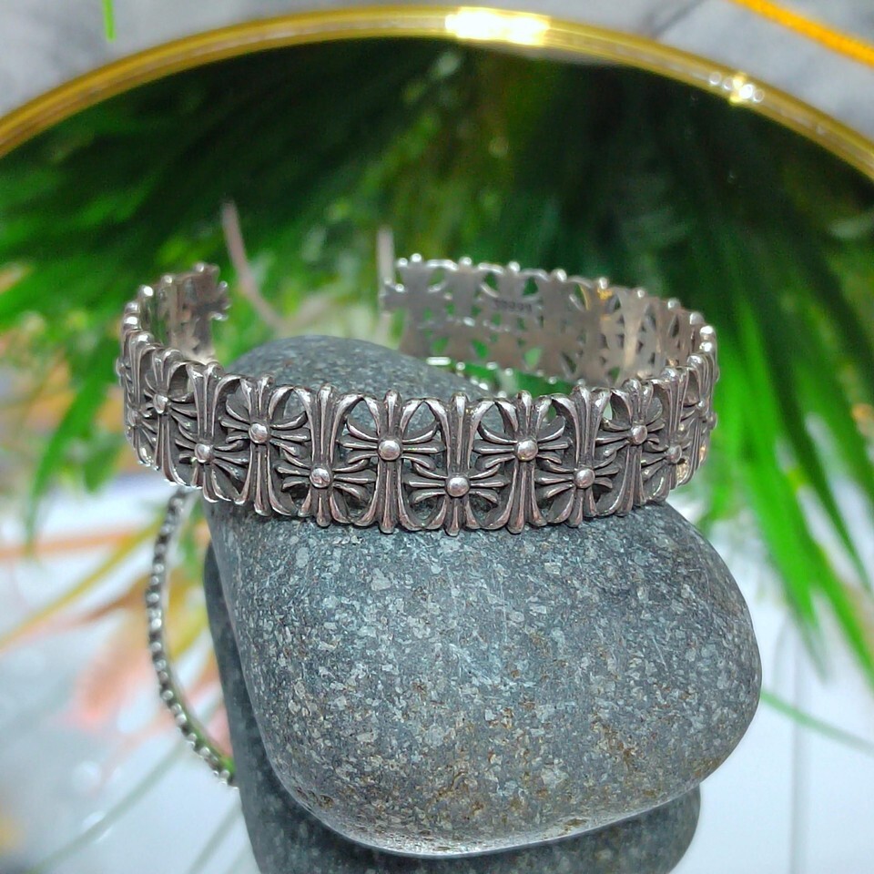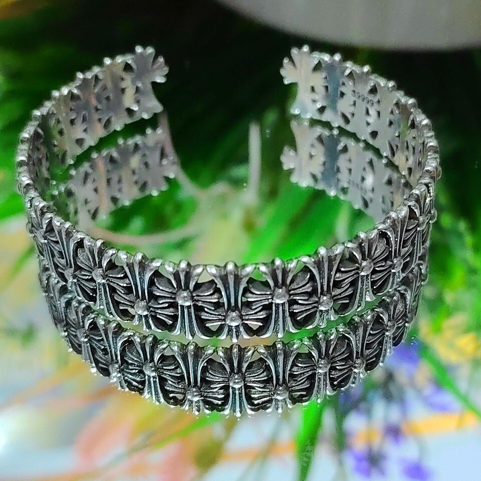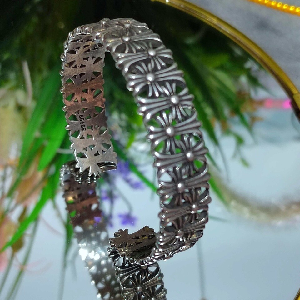 S9999 Silver Filled Vermeil Cross Bangle | Adjustable Unisex Thai Trend SL310