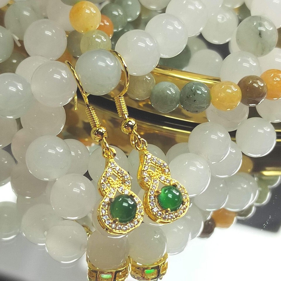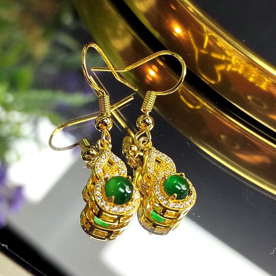 Natural Guatemala Imperial Green Hulu Jadeite Earrings S925 SL052