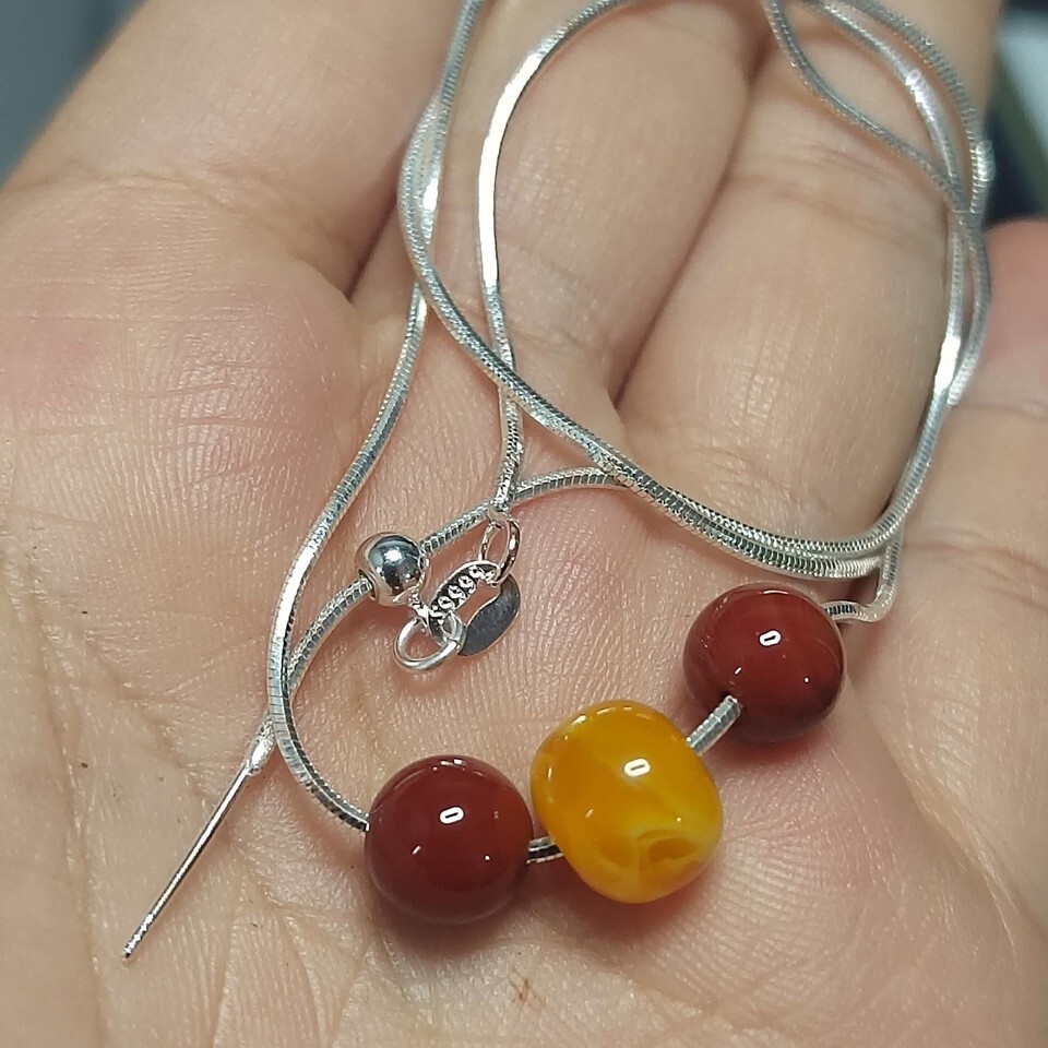 Materials: Russian Beeswax Amber, China Ox Blood Nanhong Agate, S999 Silver Vermeil Chain