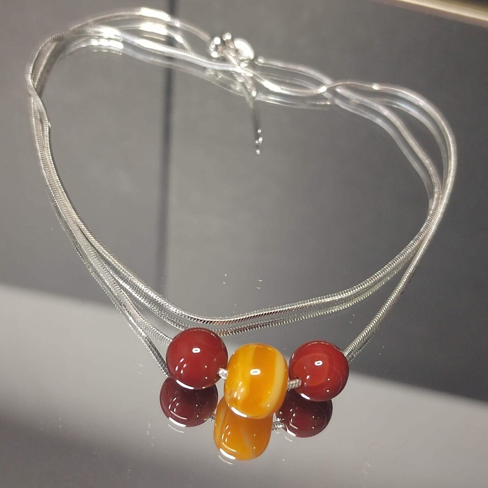 This handcrafted jewelry piece features a harmonious blend of Russian Baltic Beeswax Amber and China Ox Blood Nanhong Agate, strung on a sleek S999 silver-filled vermeil chain. Designed with minimalist elegance, it is available as either a bracelet or necklace—perfect for daily wear or special occasions. The warm, honey-like glow of amber contrasts beautifully with the deep red of Nanhong agate, creating a look that is both fashionable and meaningful.