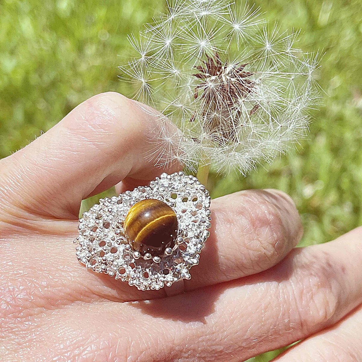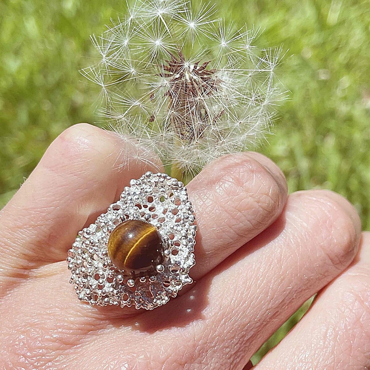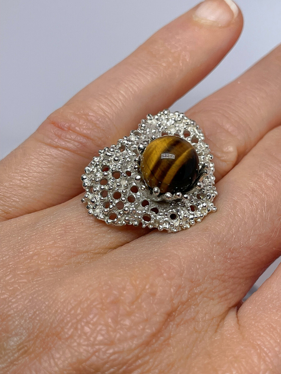 extraordinary modernist natural tigers eye ring