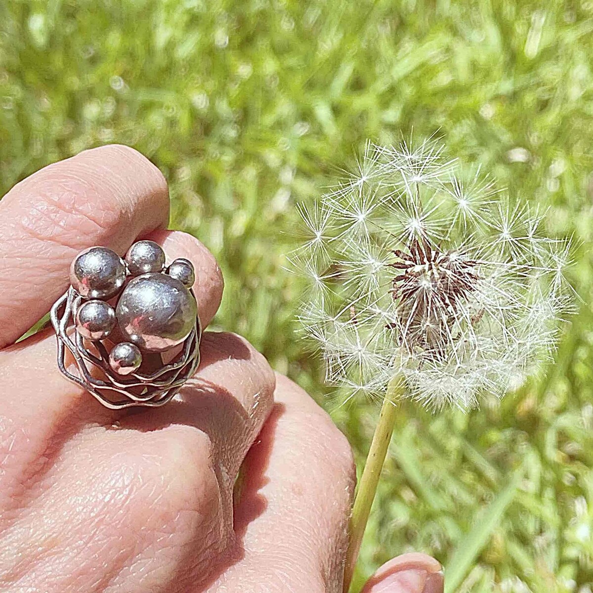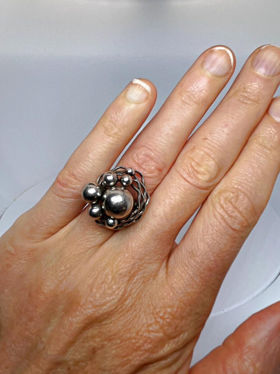 A handmade sterling silver mid century modernist ring.