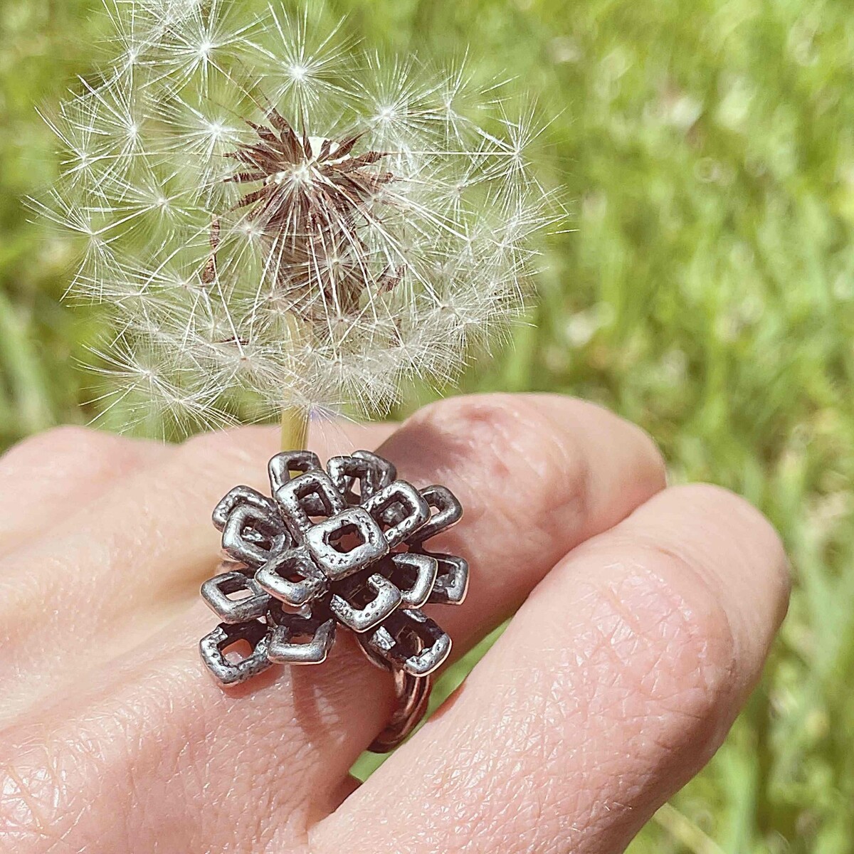 Starburst Sterling Silver Ring Unique 1970s Silver Rings Jewelry HOLIDAY GIFT!