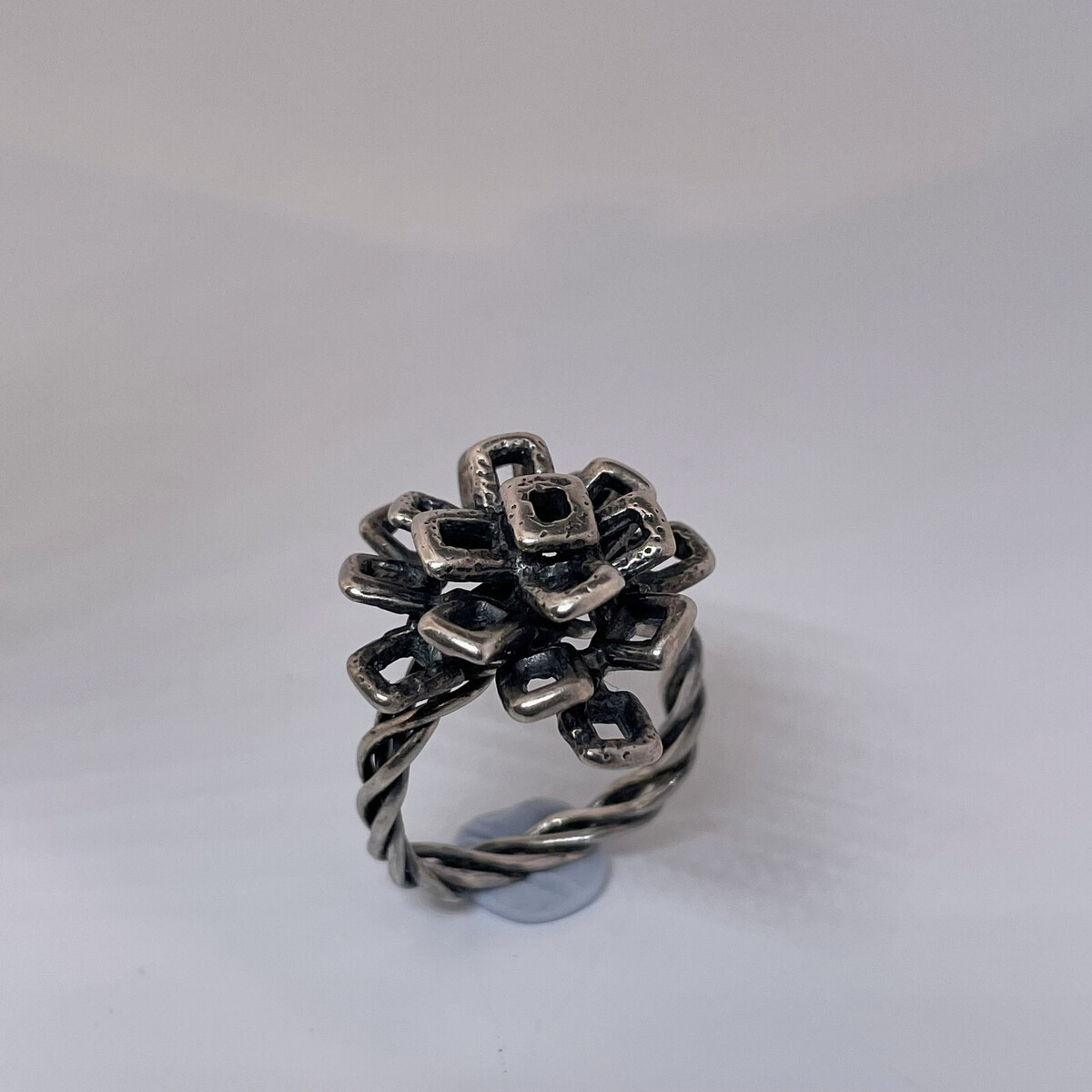 This unique ring has a one of a kind sculptural design which is artistic and eye catching.