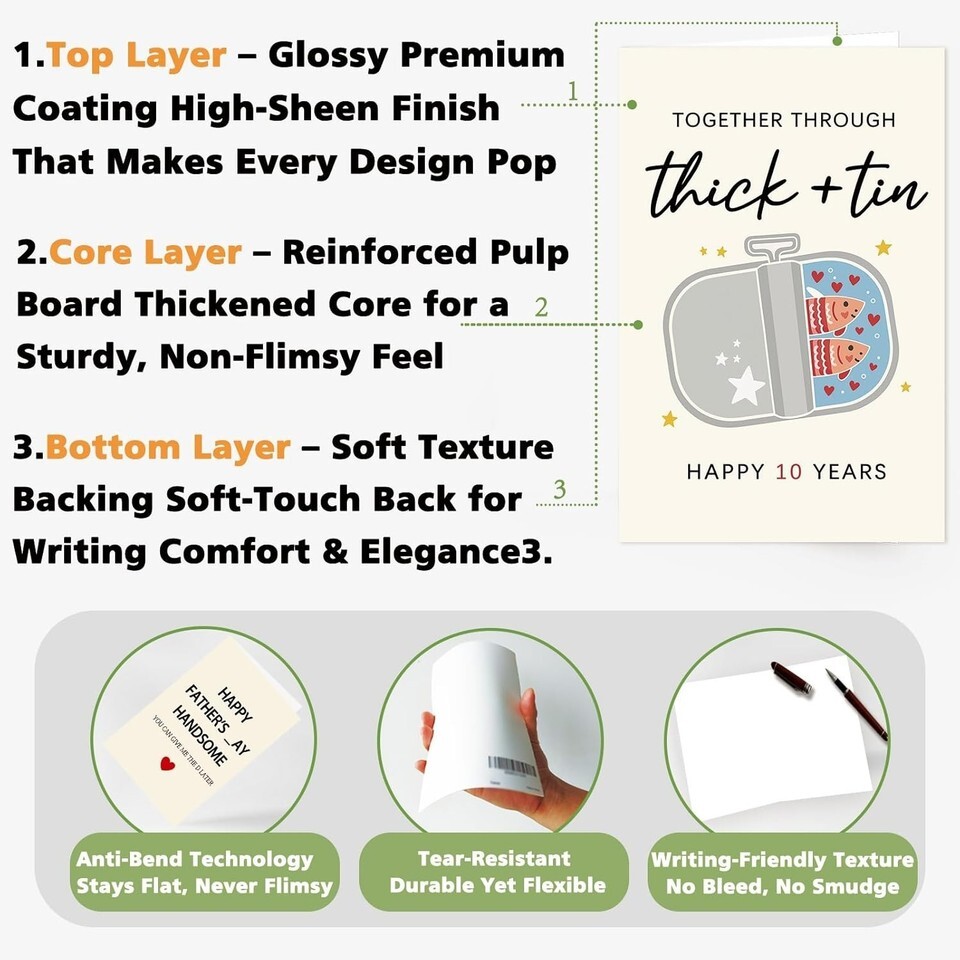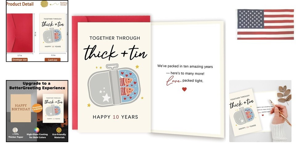 Heartfelt Inside Message ? The card features a touching message: ?We?ve packed in ten amazing ? here?s to many more! Love, packed tight,? making it a memorable sentiment they?ll treasure.
