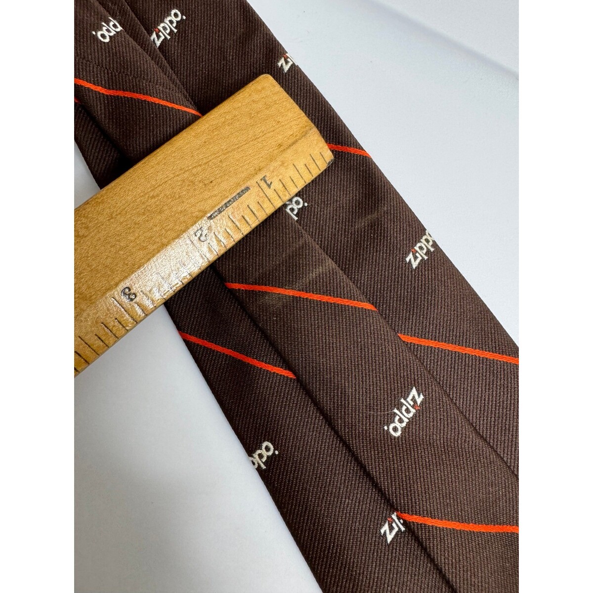 Keywords: Zippo tie, vintage tie, designer tie, mens tie, necktie, silk blend tie, logo tie, striped tie, brown tie, orange stripe tie, collectible tie, fashion accessory, formal wear, business accessory