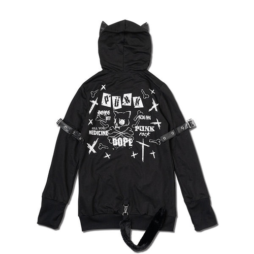 Goth Emo Harajuku-style black cat ear zip hoodie