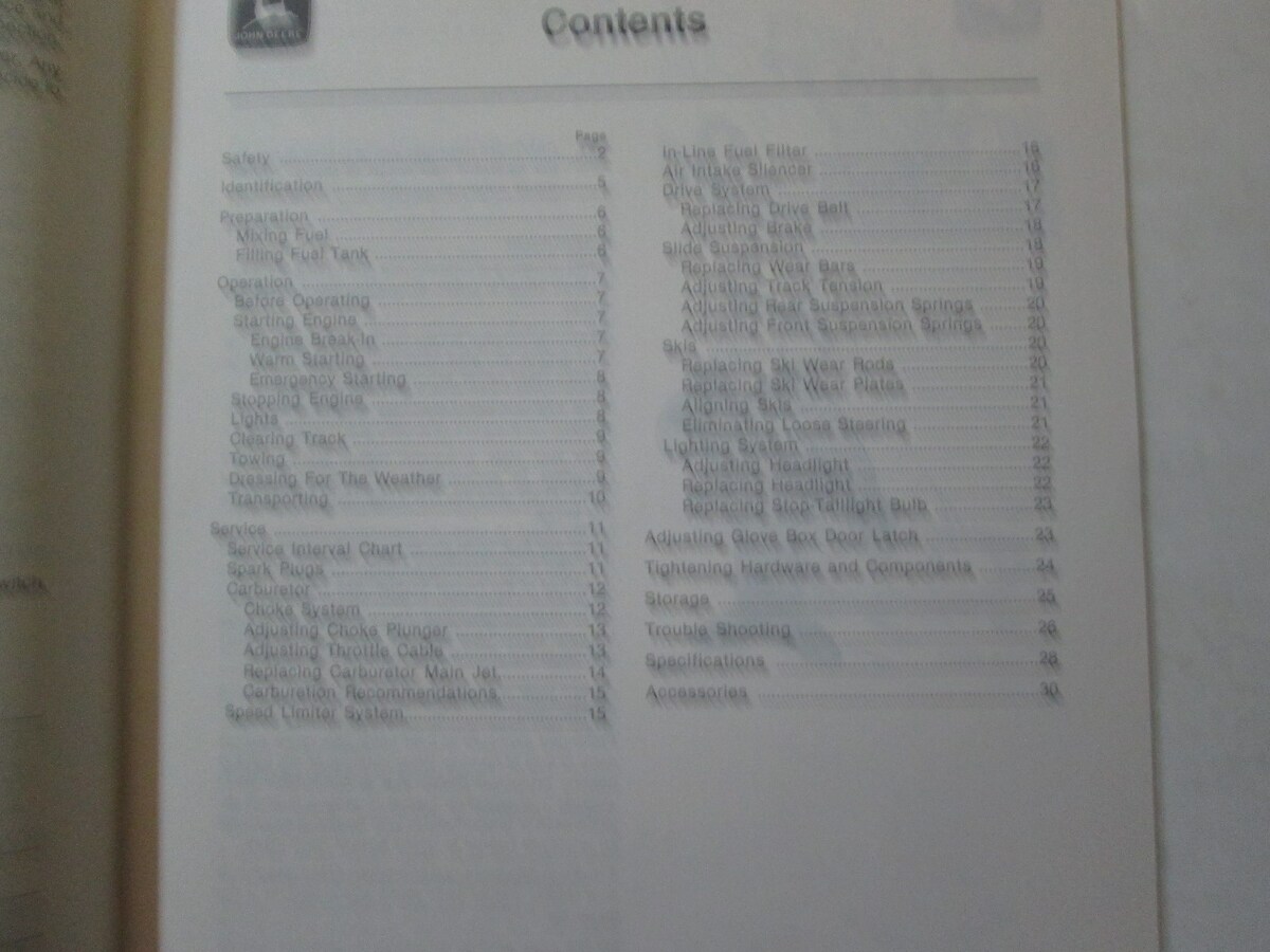 John Deere Sprintfire Snowmobile Dell'Operatore Manuale OM-M69335 Problema H1