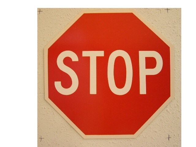 This poster flat is 12 inches by 12 inches and is in mint unused condition It is in the shape of a stop sign and is 2 sided