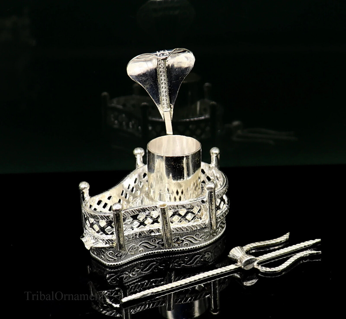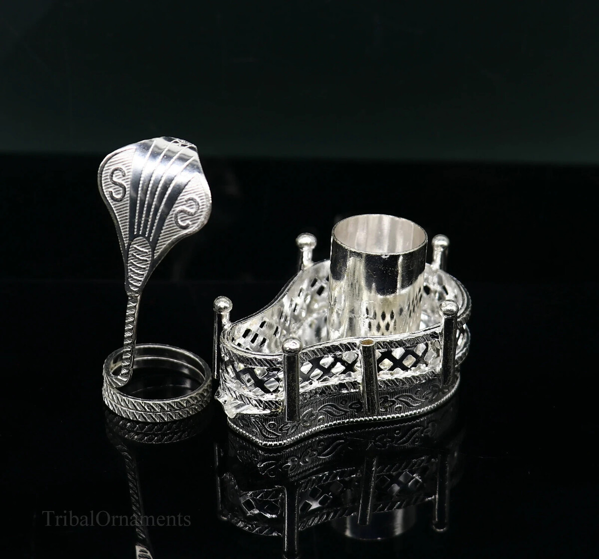 925 sterling silver Mahakal lingam stand/jalheri statue puja article su335