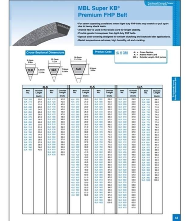 - Manufacturer: MBL USA (Distributor for Mitsuboshi Belting Ltd.)