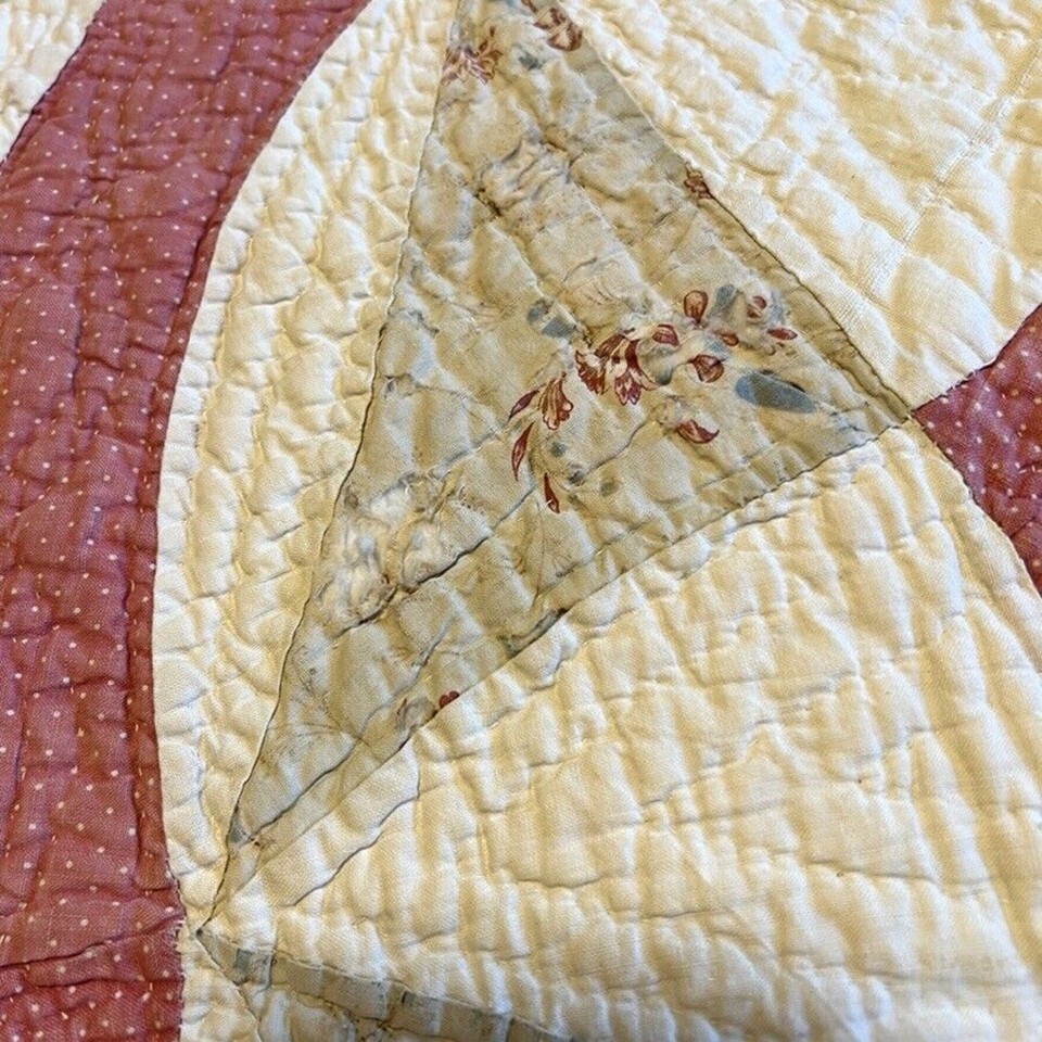 Antique Hand Sewn Shabby Feed Sack Quilt 20S-30S 98x100 Pinks & White Depression