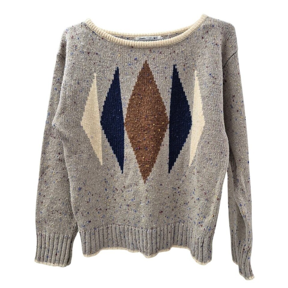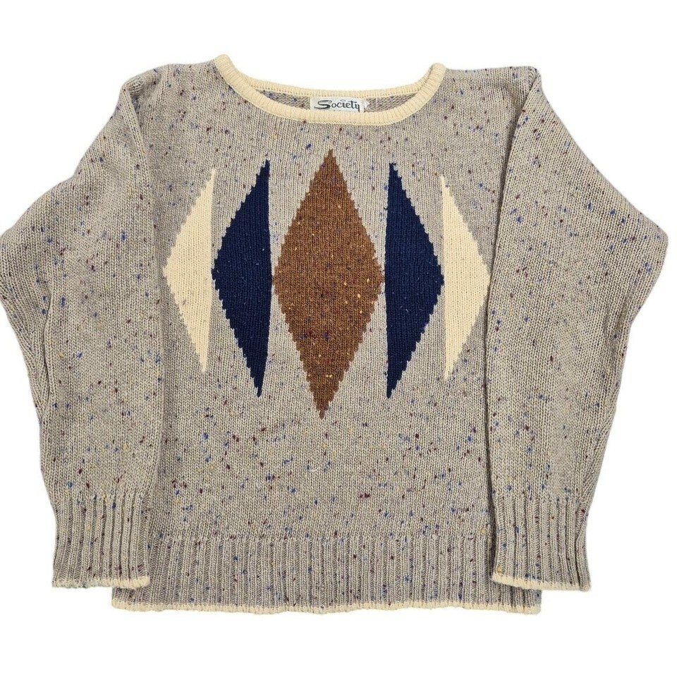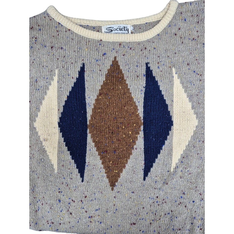 70s Retro VTG Society Tan Diamond Speckled Mens Sweater Sz M Wool Blend