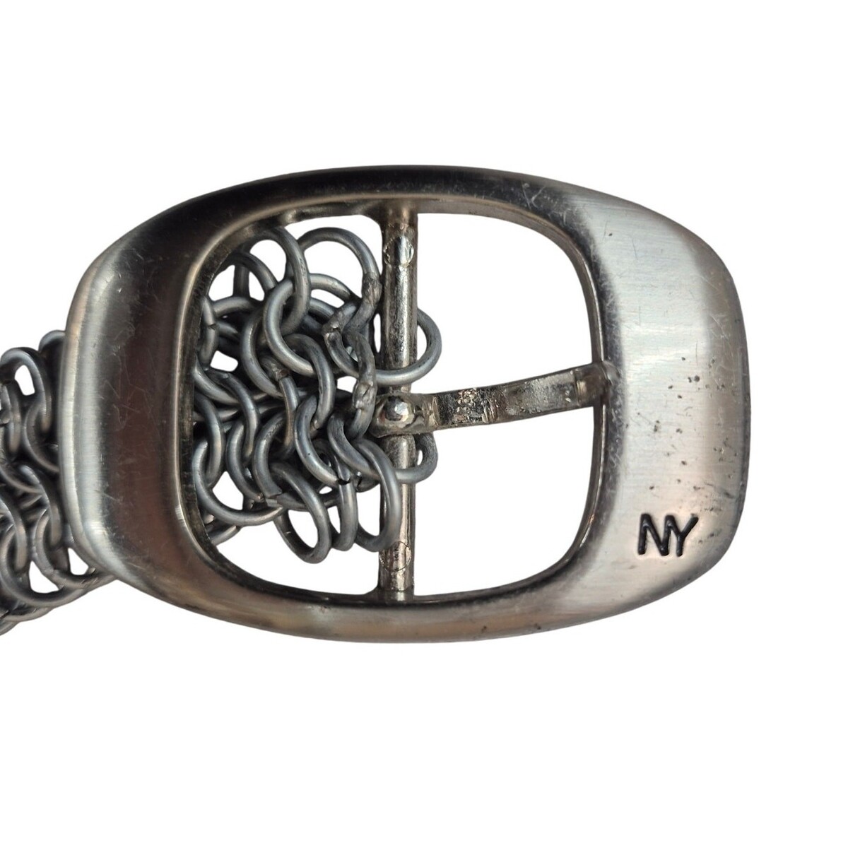 This isn't just an accessory; it's a statement piece forged from sturdy steel. The chainmail design gives it an edgy, almost medieval vibe, while the hefty buckle proudly displays "NY" ? because this belt has stories to tell from the concrete jungle!