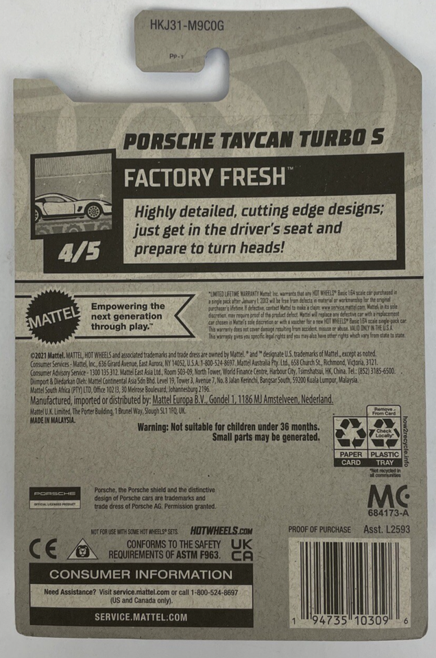 2021 Hot Wheels PORSCHE TAYCAN TURBO S #149/250 Factory Fresh 4/5