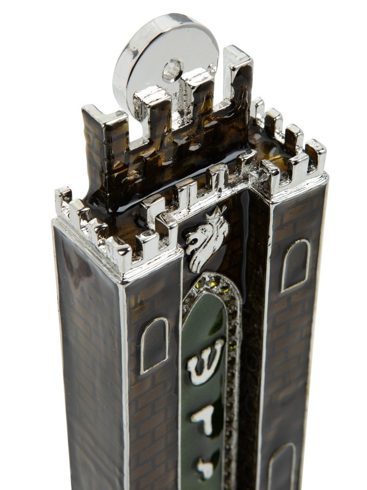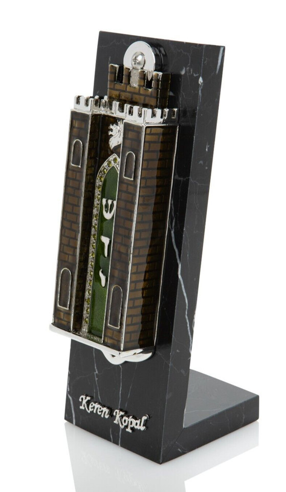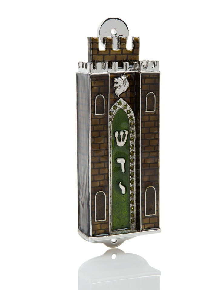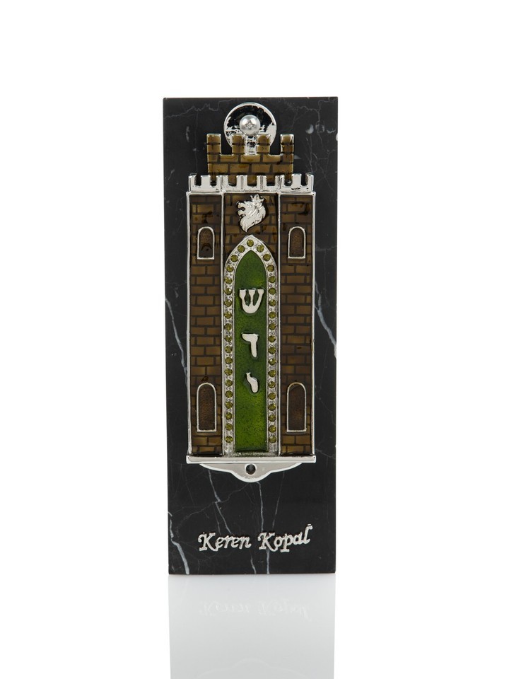 Keren Kopal Hand made Metal brown & green mezuzah Decorated & Austrian Crystals
