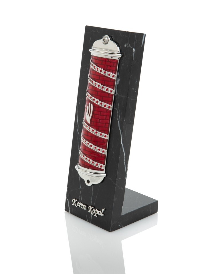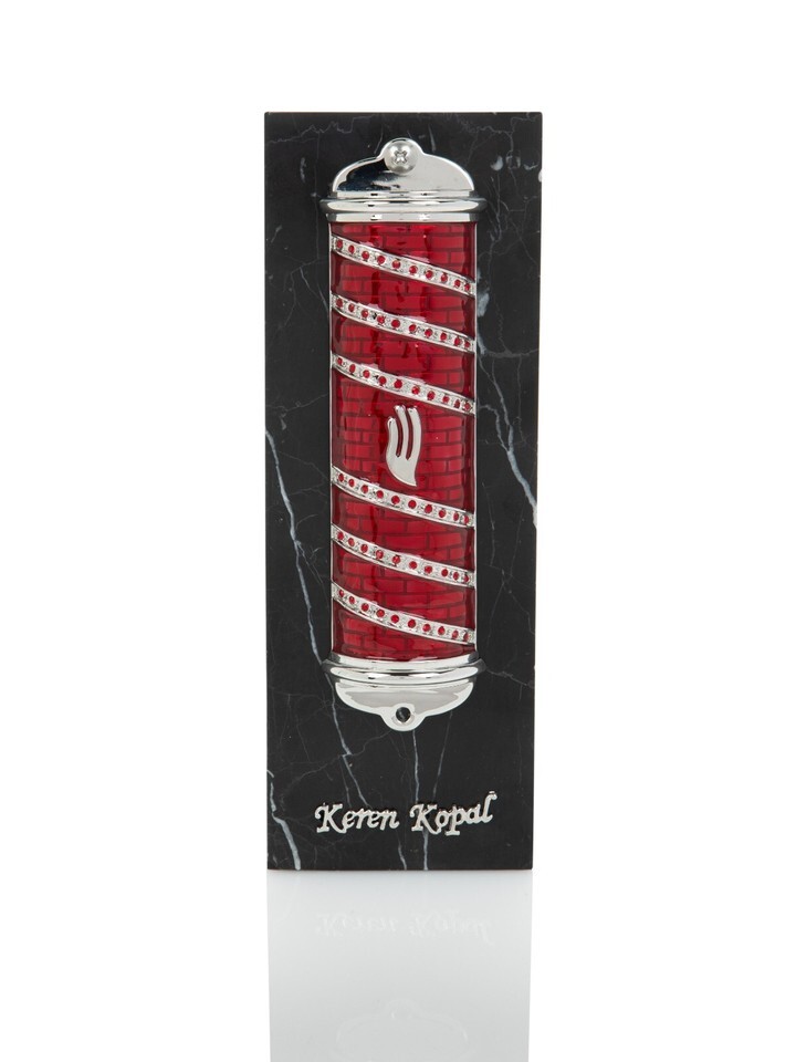 Keren Kopal Hand made Metal Red mezuzah Decorated with Austrian Crystals