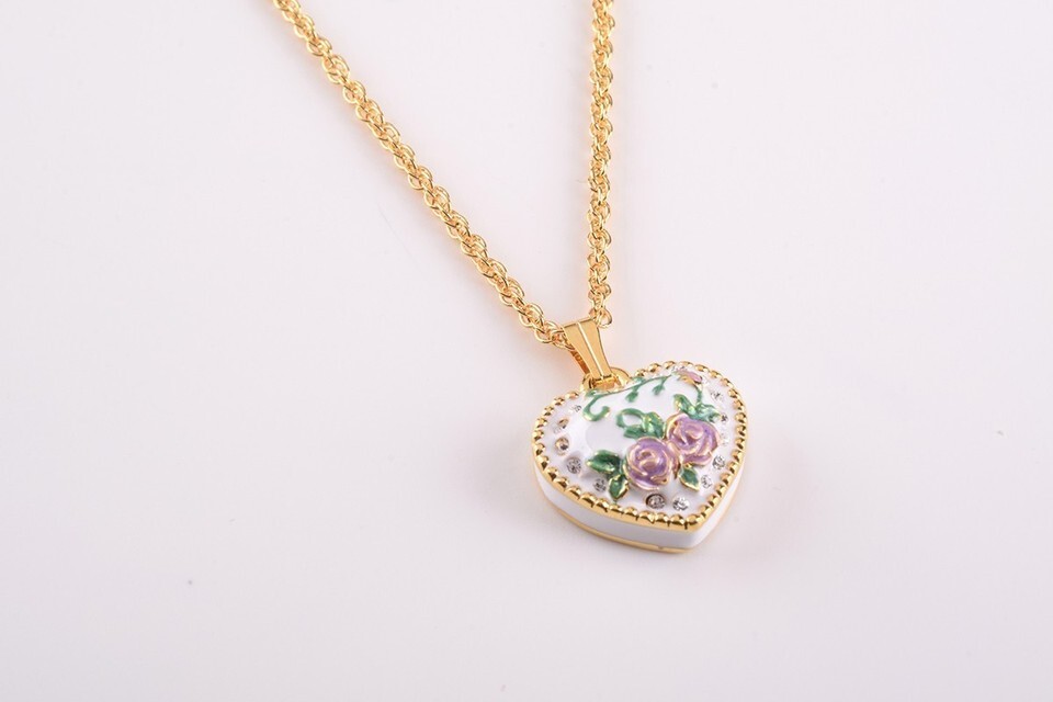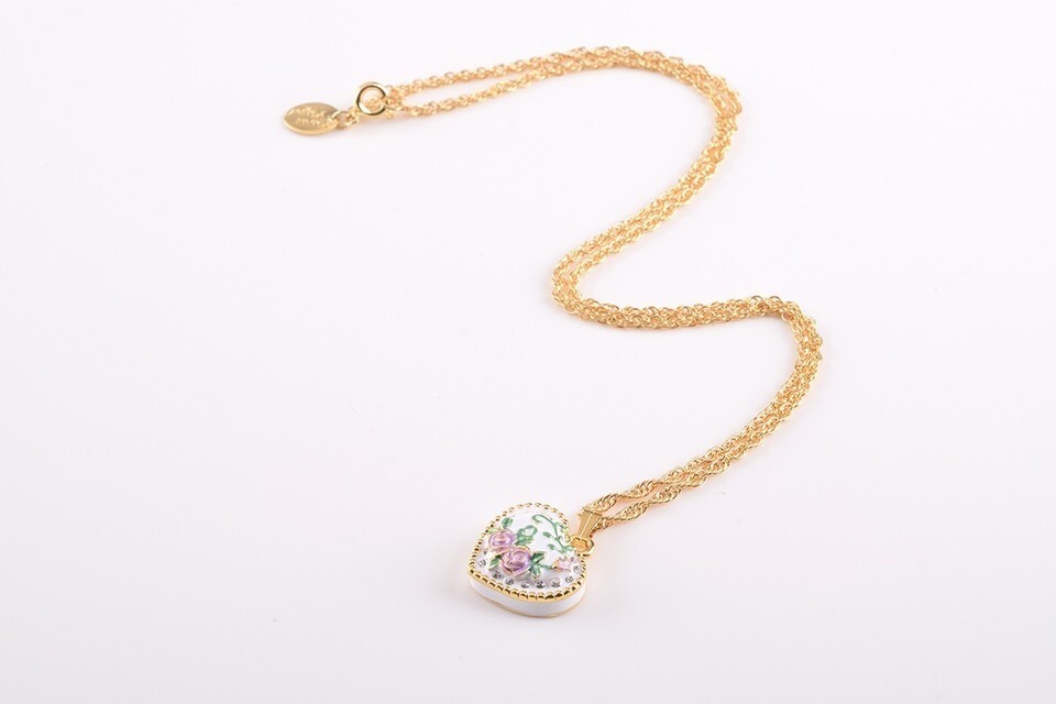 Collier pendentif Keren Kopal coeur avec fleurs éléphant cristaux décorés
