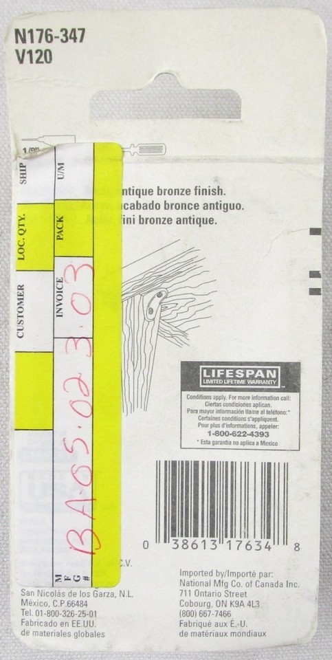 NIP National Hardware Antique Bronze Steel Chair Leg Braces, 1" x 3/4", N176-347