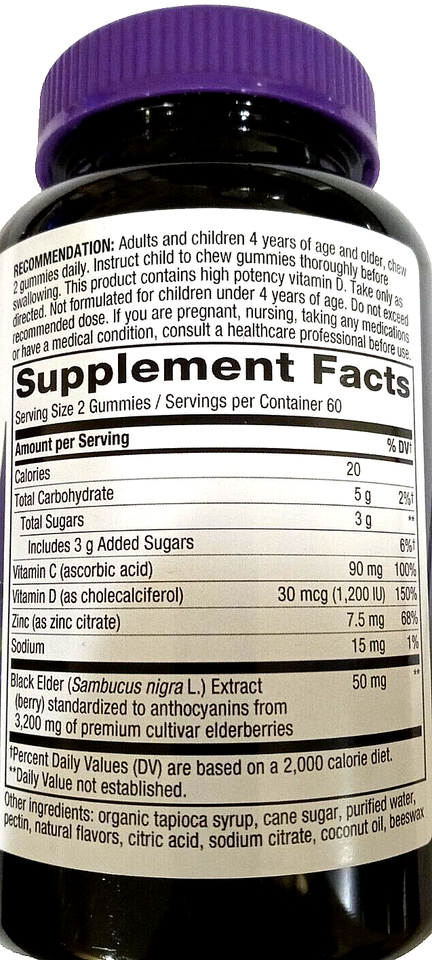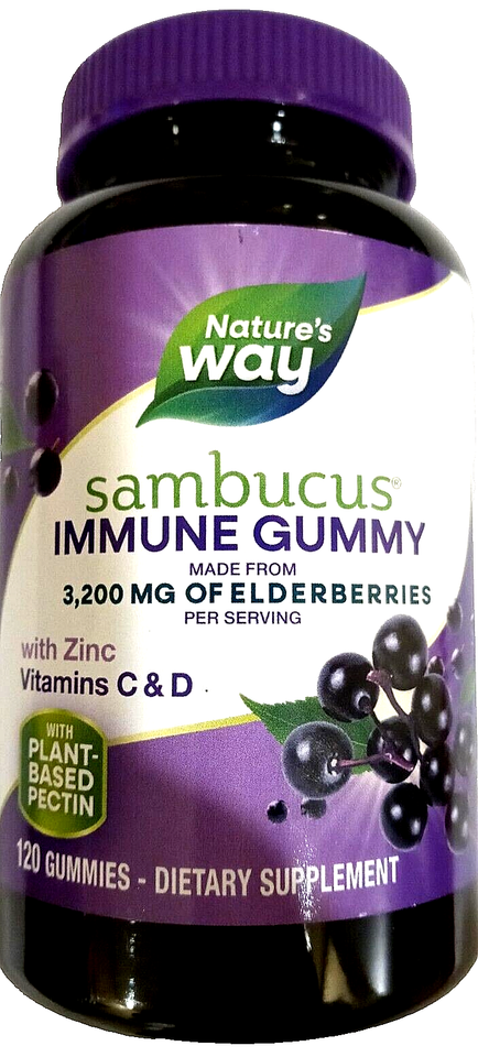 Nature's Way Sambucus Elderberry+Zinc+Vits C&D Immune Gummies 120 Ct EXP 05/2026