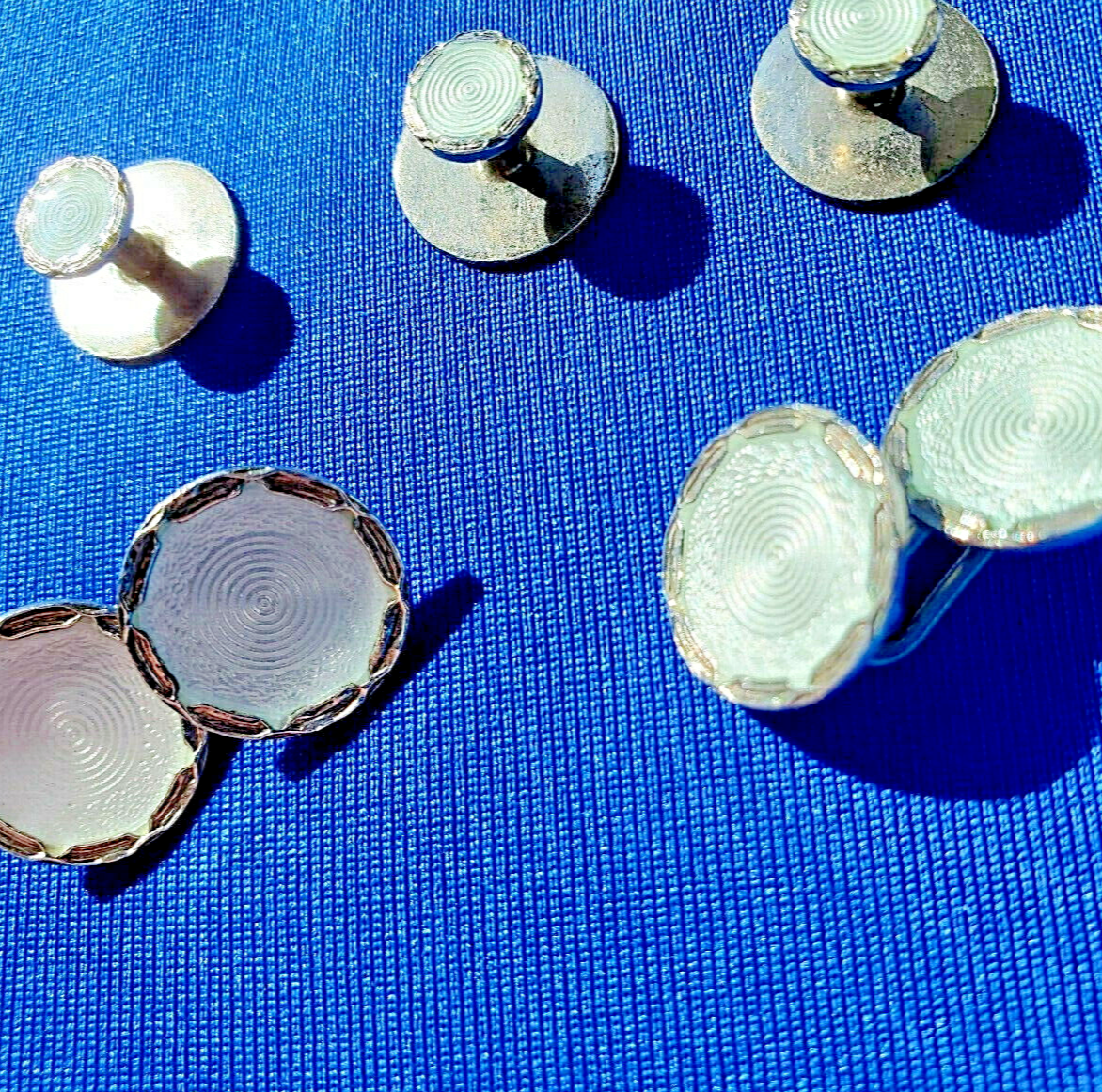 Art DECO STERLING SILVER GUILLOCHE ENAMEL CUFFLINK BUTTONS SET ANTIQUE