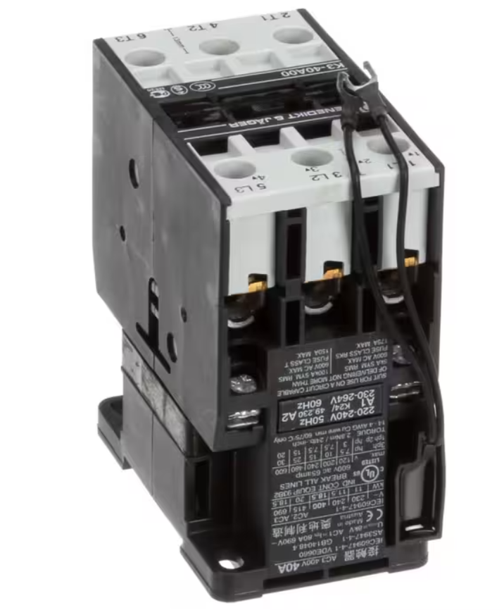 Electrolux Professional K3-40A00, T76.9529, Contactor, 220?240V, 50/60HZ, 40A, 3 Pole ? a genuine OEM electrical contactor built for reliable power control in Electrolux Professional equipment. This heavy-duty contactor ensures stable current switching, long electrical endurance, and safe operation in demanding commercial environments.