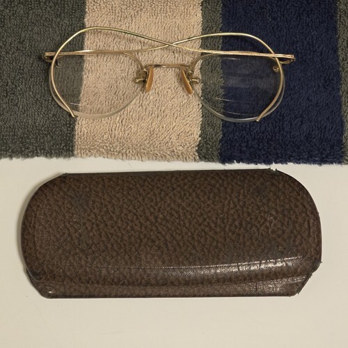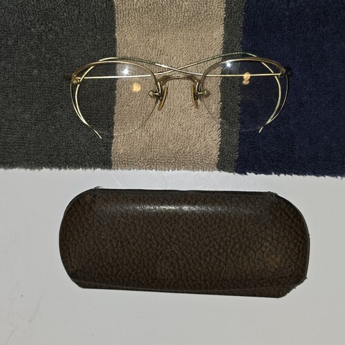 VINTAGE AO AMERICAN OPTICAL 1/10 12K GF GOLD FILLED EYEGLASS RIMLESS FRAMES + BROWN CASE.