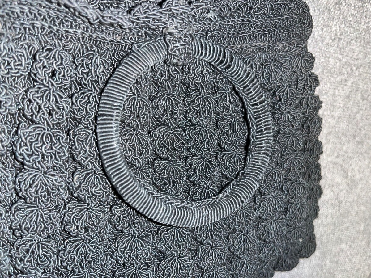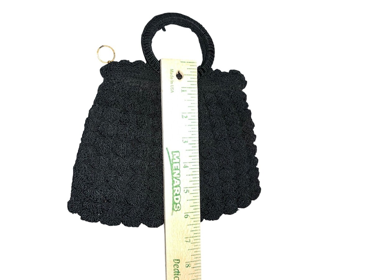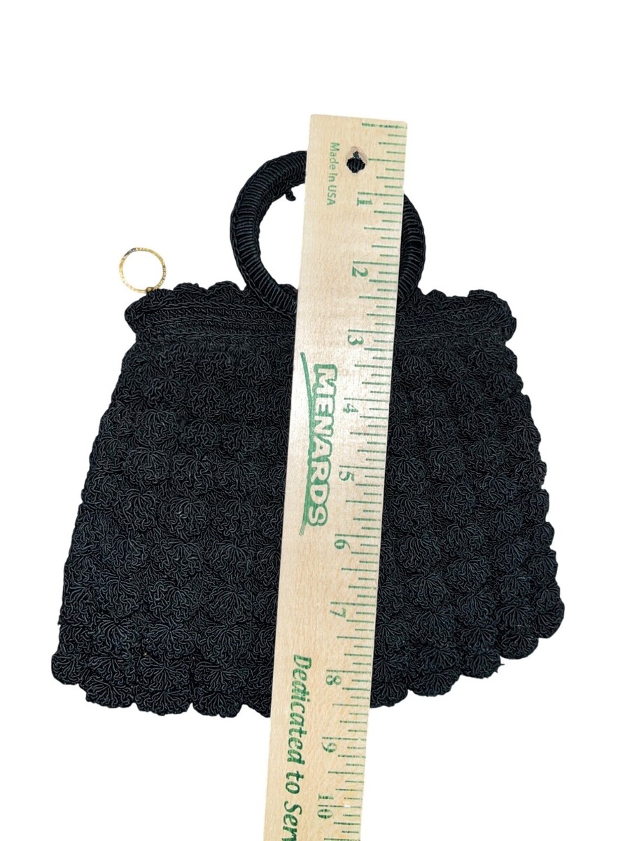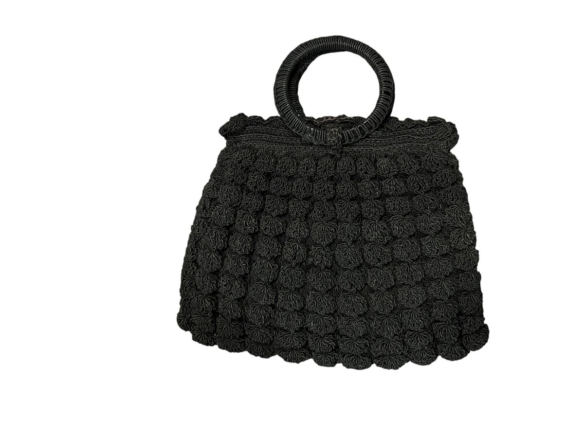 vintage crochet handbag, black popcorn stitch purse, 1950s handbag, mid century bag, art deco style purse, vintage clutch, handmade crochet bag, evening bag black, retro handbag, collectible purse, boho vintage bag, victorian style purse, antique crochet handbag