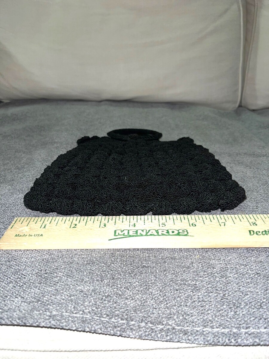 Vintage Black Crocheted Popcorn Stitch Handbag Small Purse Mid Century Used