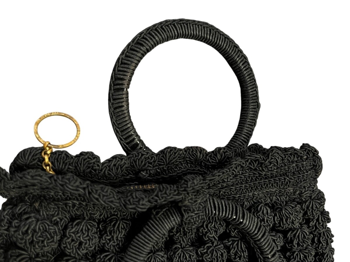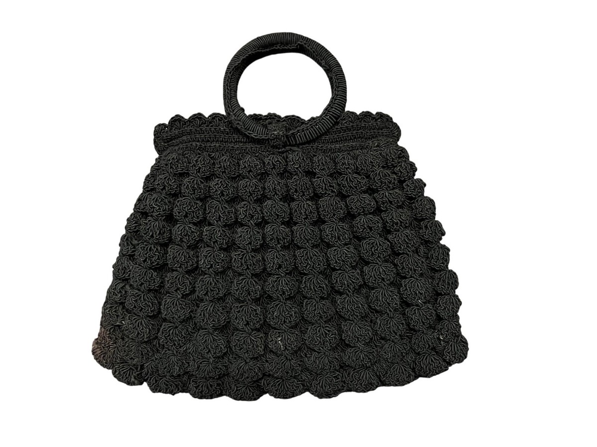 Vintage Black Crocheted Popcorn Stitch Handbag Purse ? Mid-Century Small Bag