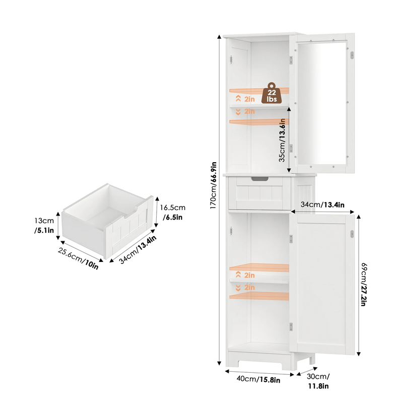 1 x Tall Bathroom Cabinet, 1 x Assembly Kit, 1 x Instructions |