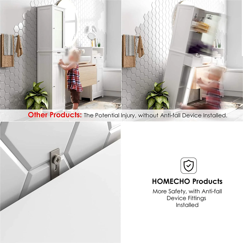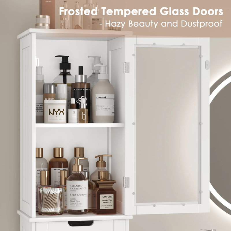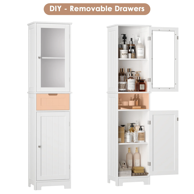 Bathroom Storage Tower, Narrow Linen Cabinet with Door and Drawers, Tall Bathroo
