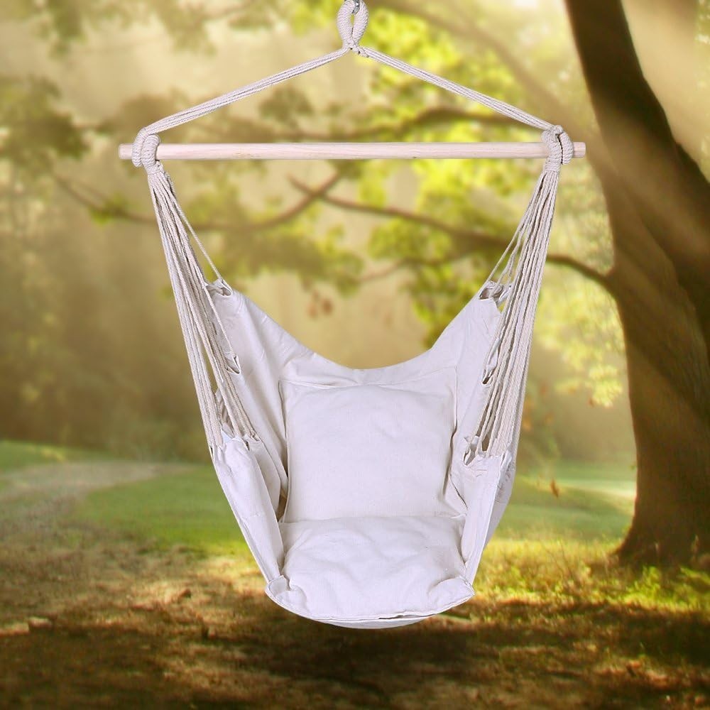 Y- STOP Hammock Chair Hanging Rope Swing, Max 330 Lbs, 2 Cushions Included, L...