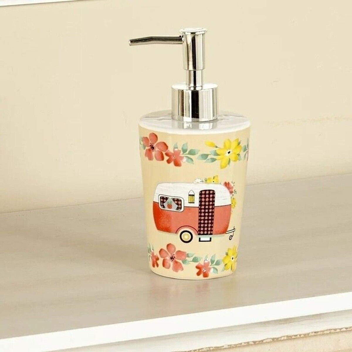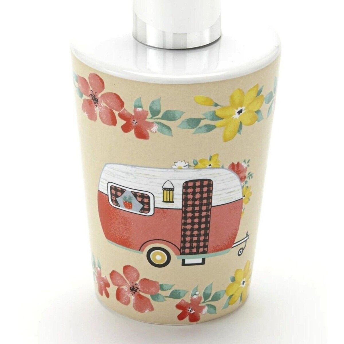 Travel Trailer Soap Pump Dispenser Floral Retro Camper Kitchen Bath Ceramic NEW